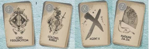 4 張身分牌(F領主、B上校、特工X、夫人Z)