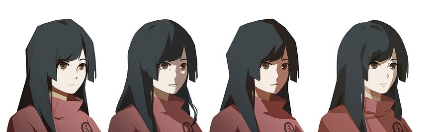 開發初期時,最早要找出色塊的分配方法,切出輪廓,定義弧線畫法、陰影顏色面積等。