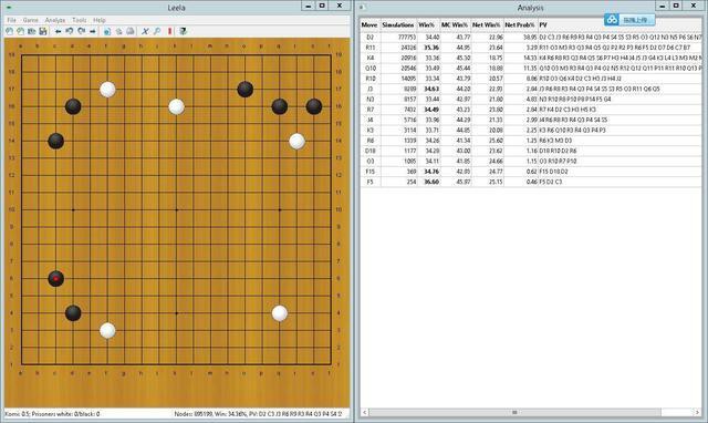leela用時接近兩小時,已經接近它的極限計算。因為leela本身無法顯示手數,所以放一